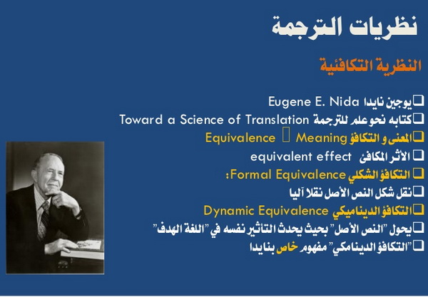أما الترجمات التي تطمح إلى تطبيق مبدأ التكافؤ الديناميكي فتعطي الأولوية لمبدأ (التأثير المتكافئ)، أي أنها تحاول، وفق نايدا، أن تحدث في قارئها الأثر نفسه الذي يحدثه النص الأصل في قارئه، فيأخذ المترجم في الاعتبار الظروف والمعطيات السياقية الخاصة بقارئه عند نقله للنص الأصلي، ويدخل بعض التغييرات عليه، فيكون الأسلوب والنحو مقبولين مع الحفاظ على جوهر النص الأصل، وهكذا تلقى الترجمة نجاحا وقبولا واسعا ربما يفوق النجاح الذي حظي به النص الأصل. مثال على ذلك (ألف ليلة وليلة)، التي خضعت ترجماتها من اللغة العربية إلى اللغة الفرنسية لمبدأ التكفافؤ (الديناميكي)، الذي يحتم على المترجم الأخذ بعين الاعتبار الظروف الحضارية والثقافية لمتلقيه وإضافتها إلى منتوجه المترجم، مع الحرص على عدم الابتعاد من النص الأصل. فترجمة الليالي العربية التي قام بها أنطوان جالان في مطلع القرن الثامن عشر لاقت نجاحا كبيرا في فرنسا وخارجها لأنها اتخذت أسلوب عصر التنوير، واشتهرت كذلك ترجمة الليالي التي قام بها ماردروس في بداية القرن العشرين وجاءت صياغتها بأسلوب المذهب الرومانسي بسبب تأثرها الكبير بأسلوب ذلك المذهب الذي كان سائدا آنذاك. (انظر مسعود عمشوش، تقنيات السرد في ألف ليلة وليلة وتوظيفها في الأدب الفرنسي في القرن الثامن عشر).